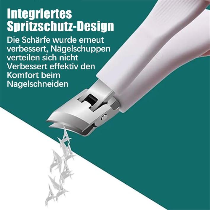 Das einzigartige Spritzschutz-Design unserer Nagelknipser verhindert effektiv das Verstreuen von Nagelresten und sorgt dafür, dass Ihre Arbeitsfläche stets sauber bleibt.